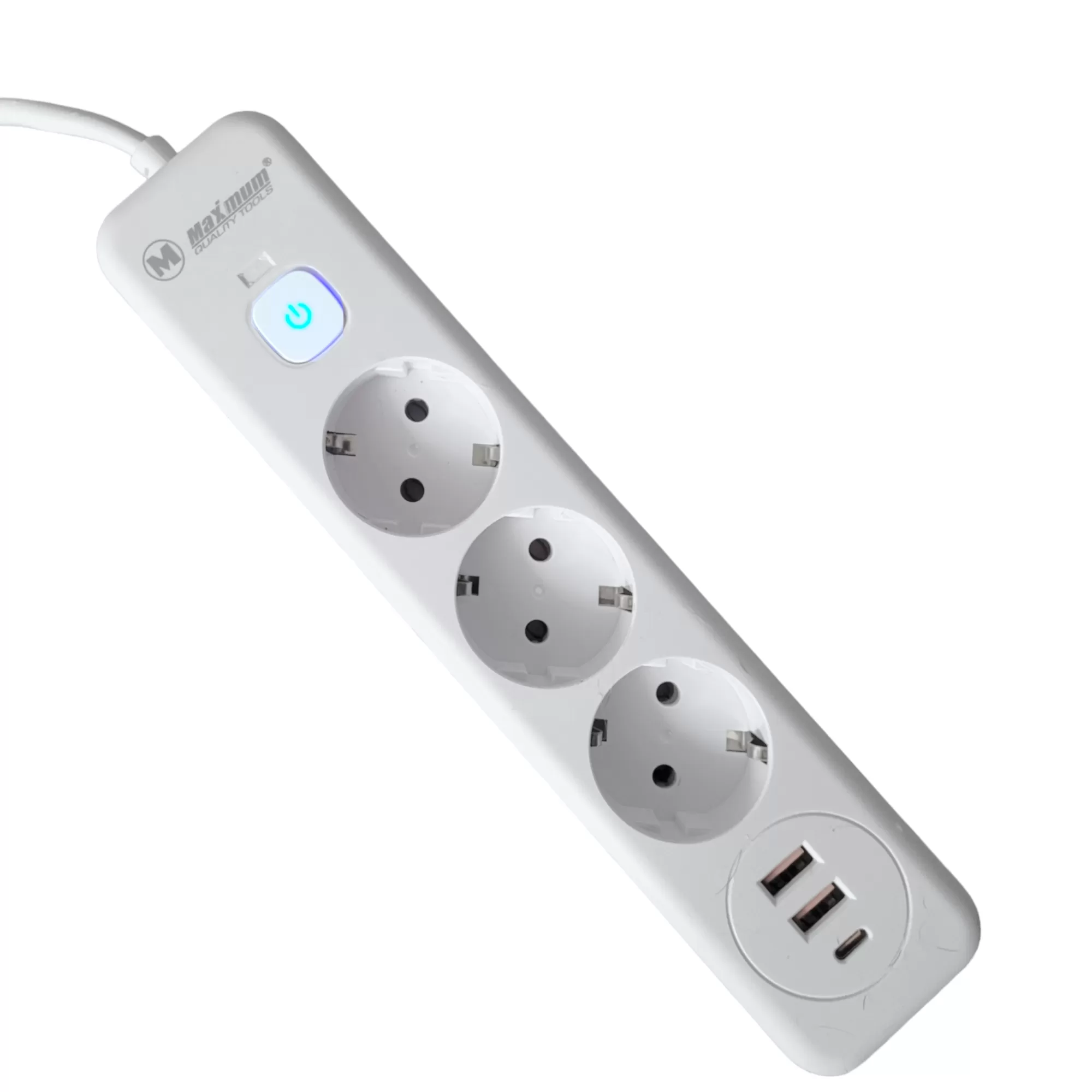 Удлинитель с заземлением 2 м, глубокий, 3 EURO розетки, 5 USB портов,Type C, U 314, "MAXIMUM" MX 147