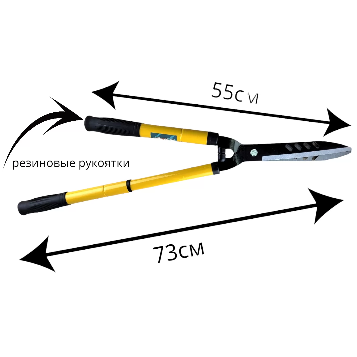 Садовые ножницы для кустов — практичный инструмент для обрезания лишней растительности на садовом участке. Длину рукояток можно регулировать, что удобно, когда нужно обработать труднодоступный объект.