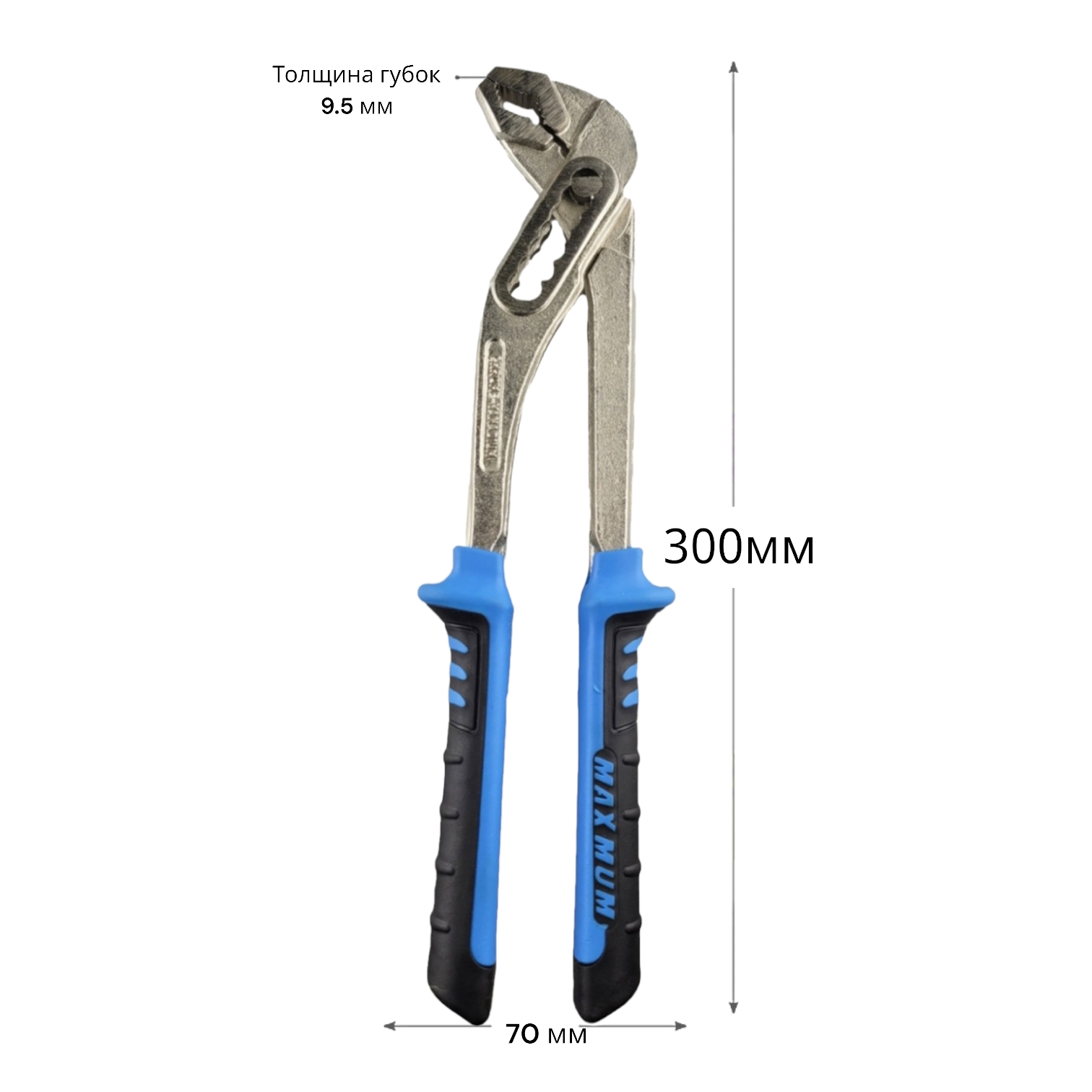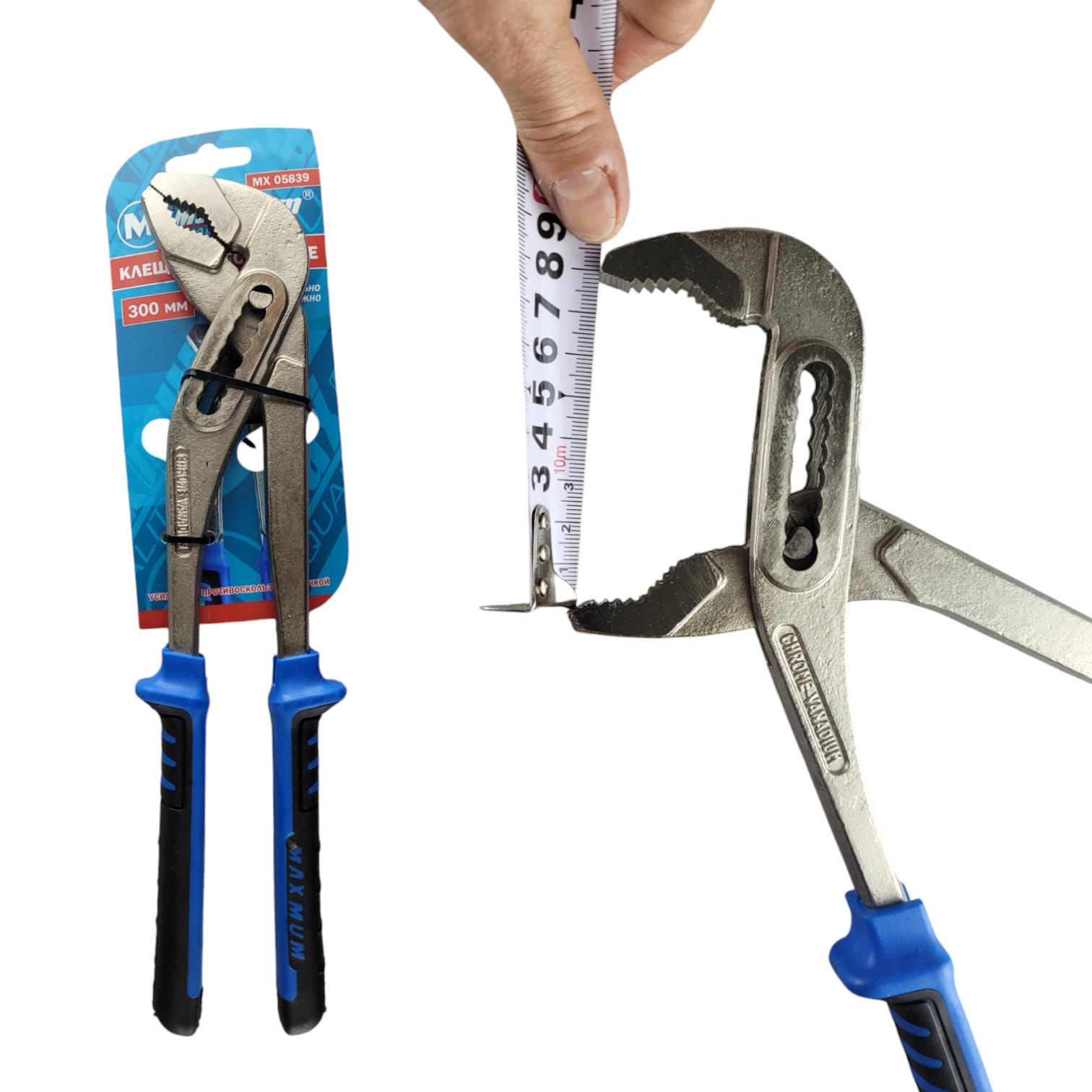 Ключ-клещи переставные 300 мм от «Maximum Quality Tools» изготовлены из хромованадиевой стали, поэтому они имеют высокую прочность и устойчивость к повреждениям. Острые насечки на губках захватывают даже те предметы, которые не имеют специальных рабочих поверхностей. Двухкомпонентные рукоятки не скользят и удобно лежат в руке. Клещи предназначены для захвата различных по форме и размерам предметов и могут использоваться в качестве трубного или разводного ключа. Клещи гаечные переставные 300 мм имеют рабочий ход губок от 0 - до 60 мм.