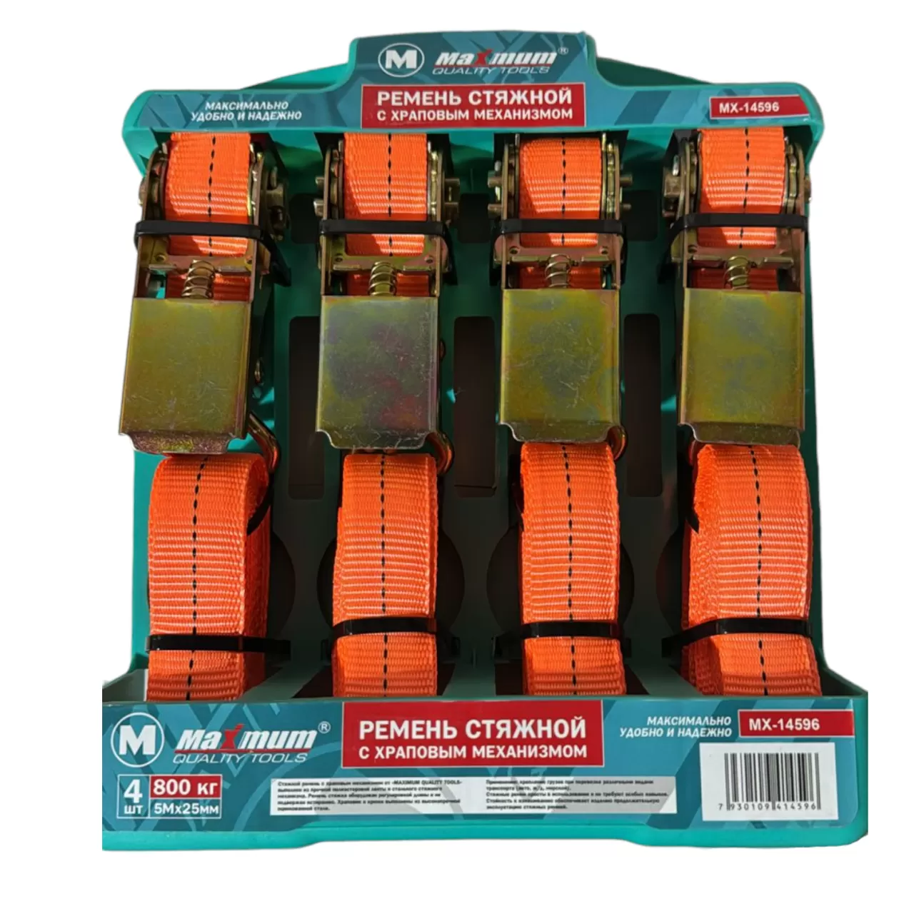 Комплект стяжных грузовых ремней длиной по 5 метров от "Maximum Quality Tools" используется для надежной фиксации грузов на транспортных средствах. Ремни отличаются простотой регулировки рабочей длины и легкой регулировкой натяжения.