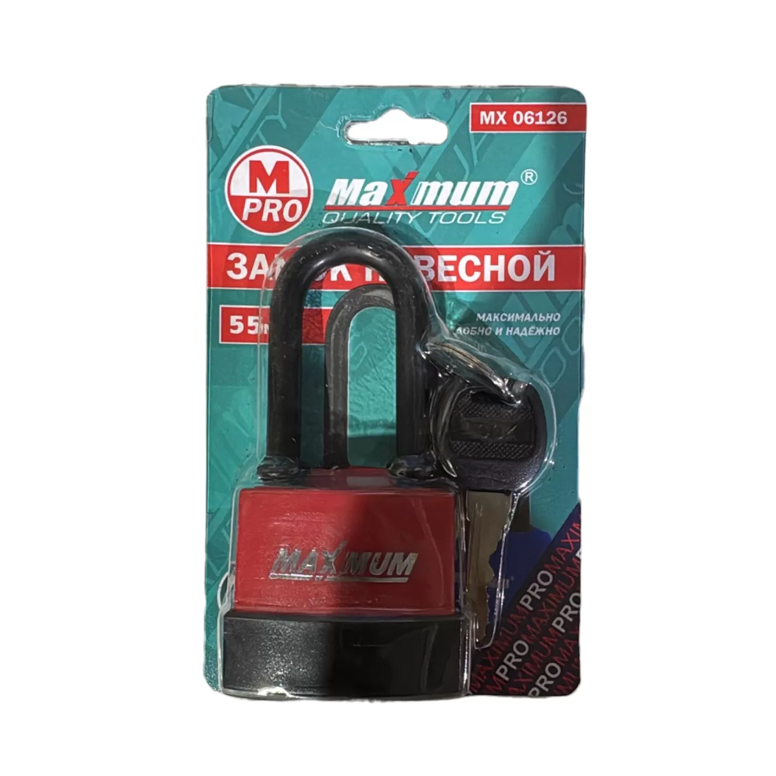 Замок всепогодный 55 мм с длинной дужкой 60 мм от бренда "MAXIMUM QUALITY TOOLS"— это популярная модель из серии навесных замков для наружного пользования. Все детали замка из чугуна защищены от воздействия коррозии: корпус в пластиковом чехле, дужка диаметром 8 мм с антикоррозийным покрытием, отверстие для ключа закрывается пластиковой заглушкой. Надежный цилиндровый механизм с автоматическим запиранием обеспечит долгосрочную бесперебойную работу замку. В комплект входит 3 английских ключа с пластиковой ручкой. При открытии ключ не выпадает и остается в замочной скважине.