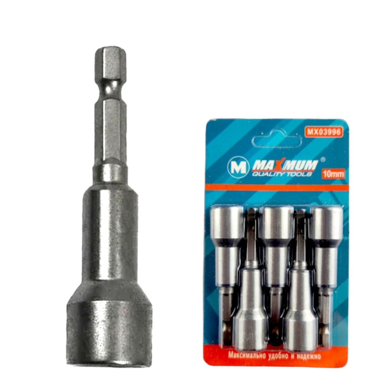 Биты торцевые 10x65 мм от "MAXIMUM Quality Tools" созданы в форме колокольчика с шестигранным хвостовиком ¼ и предназначены для монтажных работ с шуруповертом. Бита-головка создана для захвата различных гаек, винтов с квадратной головкой, крюков и головок болтов. Адаптер для болтов и саморезов отличается усиленной цельнокованой конструкцией и тщательно закаленными рабочими поверхностями, что обеспечивает высокое качество выполнения работ и длительный срок службы.