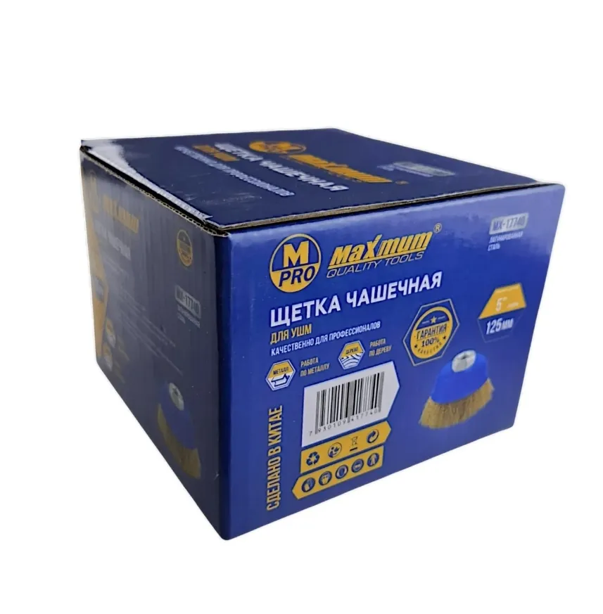 Профессиональная чашечная щетка диаметром 125 мм (5") от «MAXIMUM» — это мощный и эффективный инструмент для очистки, удаления ржавчины, зачистки сварных швов и подготовки поверхностей. Волнистая латунная проволока обеспечивает интенсивный, но бережный контакт, минимизируя риск глубоких царапин и искрообразования, что делает ее идеальной для работы с цветными металлами, нержавеющей сталью и деревом.