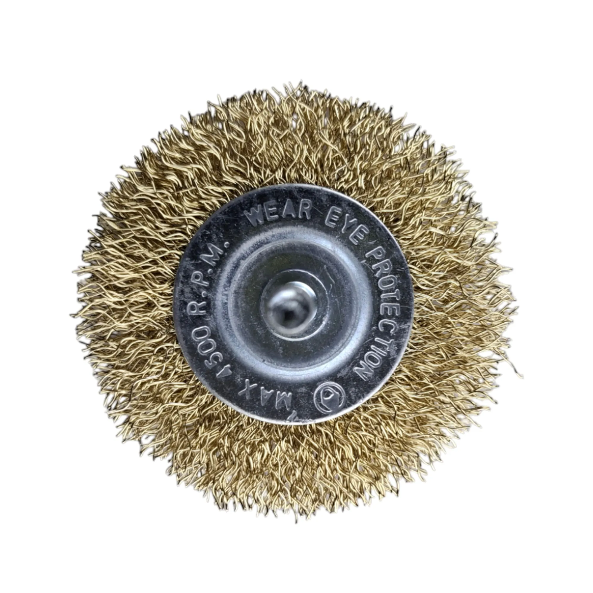 Щетка плоская с проволочной латунированной щетиной 65 мм от "MAXIMUM QUALITY TOOLS" крепится на дрель или шуруповерт через резьбовую шпильку 6 мм.