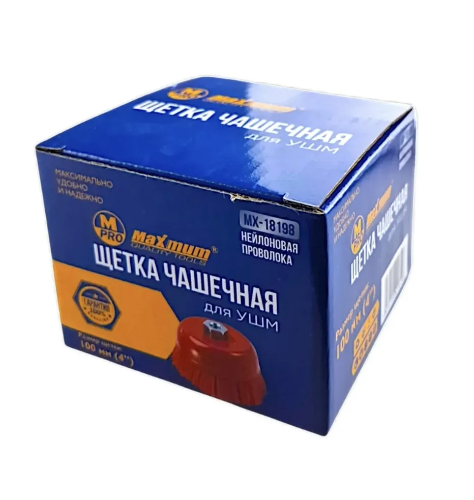 Профессиональная нейлоновая чашечная корщётка диаметром 100 мм(4 дюйма) от "MAXIMUM" создана для интенсивной работы в мастерской, гараже или на стройплощадке. Увеличенный диаметр обеспечивает высокую производительность при очистке значительных площадей.