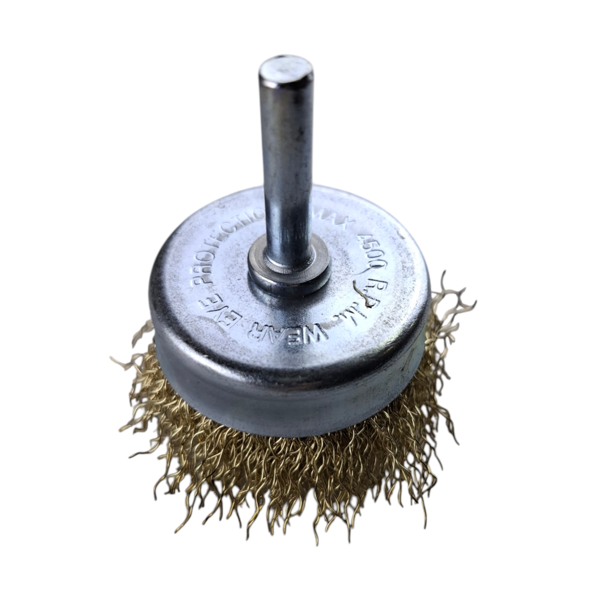 Щетка чашечная «MAXIMUM» диаметром 50 мм с волнистой проволокой из латуни — это профессиональный аксессуар для эффективной и бережной очистки поверхностей. Инструмент оснащен цилиндрическим хвостовиком на 6 мм, что обеспечивает совместимость с большинством электродрелей и шуруповертов. Благодаря латунной щетине щетка исключает искрообразование и глубокие царапины, идеально подходя для деликатных работ.