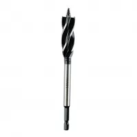 Сверло балочное по дереву 18 мм с шестигранным хвостовиком используется для создания глубоких отверстий в мягких и твердых породах древесины, фанеры и ДСП. Изготовлено из качественной высокоуглеродистой стали. Высокоточное засверливание производится благодаря резьбовому наконечнику, точное и ровное сверление благодаря выступающей режущей кромке. Балочное сверло типа спираль Левиса позволяет точно выдерживать диаметр и угол отверстия. Особенностями спирали Левиса считается её однозаходность, что обеспечивает сверлу возможность самопроизвольного втягивания в полость образующегося отверстия. Одновременно улучшается направление сверла, а, по мере углубления отверстия, происходит подрезка кромки с получением гладкой образующей.