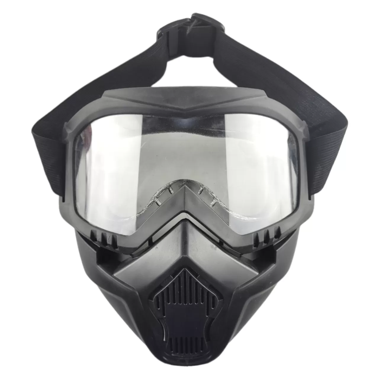 Очки-маска защитные имеют разборную конструкцию трансформер и прозрачное стекло (без тонировки) для поездок на электровелосипедах, электросамокатах, байках и электроскутерах, а также станут удобной защитой при ремонтных работах.